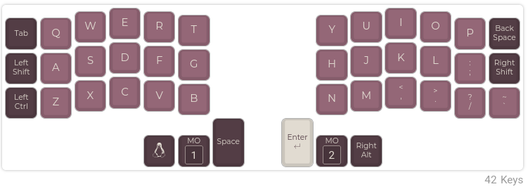 >>7546922 Да там без комбо можно сделать раскладку комфортную. Я уже в QMK конфигураторе сделал. Придется жить без симметричных кнопок модификаторов, но думаю это не проблема если юзать большой палец