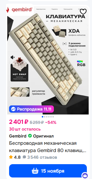 Заказал, надеюсь приедет быстро и не кирпич, вроде указано со склада в москве, да и возврат можно оформить по человечески. Пойду, пока, распаивать свичи из своей полурбочей каловиатуры, благо кейкапы у меня уже есть более менее нормальные. В одном из прошлых тредов тут чел был который это тоже покупал? или просто ссылку оставлял, отзовись, как оно ваще?