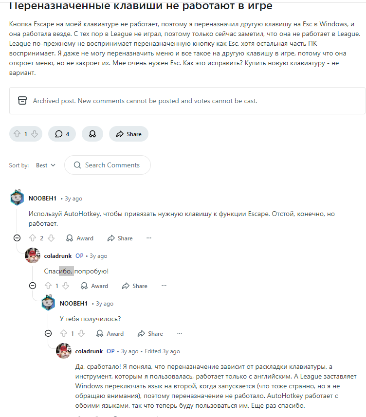>>7564258 говорят что пользоваться автохоткеем не тру потому что это типа костыля что ли те не настоящее переназначение клавиш хотя не знаю точно, надо разбираться может в самой винде есть глубинные настройки какие нибудь