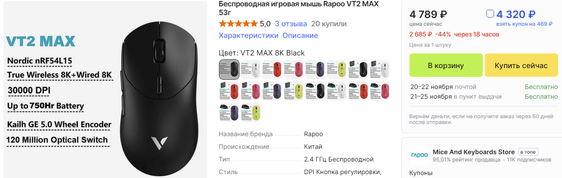 Ебать вы закупаетесь, конечно. Даже немножко завидно. Хотя чему завидовать, если ко мне уже на полпути VT0 с озона. Да, за 3600 и не оптика, но мне нужна именно маленькая и именно под коготь. А распродаж на VT0 я не вижу. VT2 Max ради попробовать немножко байтит, но всё равно ведь не под мои задачи. Нахуй потреблядство в общем.