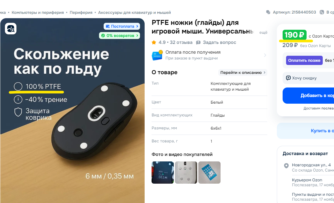 Пока не подрубал к компу, чуть позже проверю. Брал мышь за примерно 3к, ехала две недели. Возвращать уж точно не буду. Наверное, придется разбирать и микрики перепаивать у васянов.