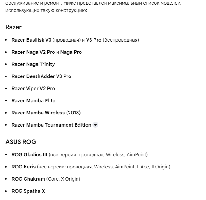 и вообще берем покупаем Razer DeathAdder V2 за тыщу на авито и что? 20к dpi 1к опрос 50g ускорение, всего этого за глаза, микрики оптика хуй сломаешь 70м кликов, ножки 100% тефлон а кабель гибкий в оплетке Razer Speedflex и это компенсирует что она не безпроводная, зато никаких заебов нету с тем что может отрыгнуь донгл, аккум, что нужно втыкать заряжать и все такое ---- или вообще пушка - ASUS ROG Gladius III похожая по спекам мыша, тоже 25к dpi 1к опрос 50g ускорение, тожки тефлон, гибкий кабель в оплетке НО помимо этого еще и быстросьемные микрики, и еще и вдобавок быстросьемный энкодер, и вообще она заточена под то чтобы ее легко разбирать было (сравни мыши ложитека которые хуй разберешь и соберешь потом), кабель тоже на изи меняется по этой причине единственный минус несколько всратоватый дизайн