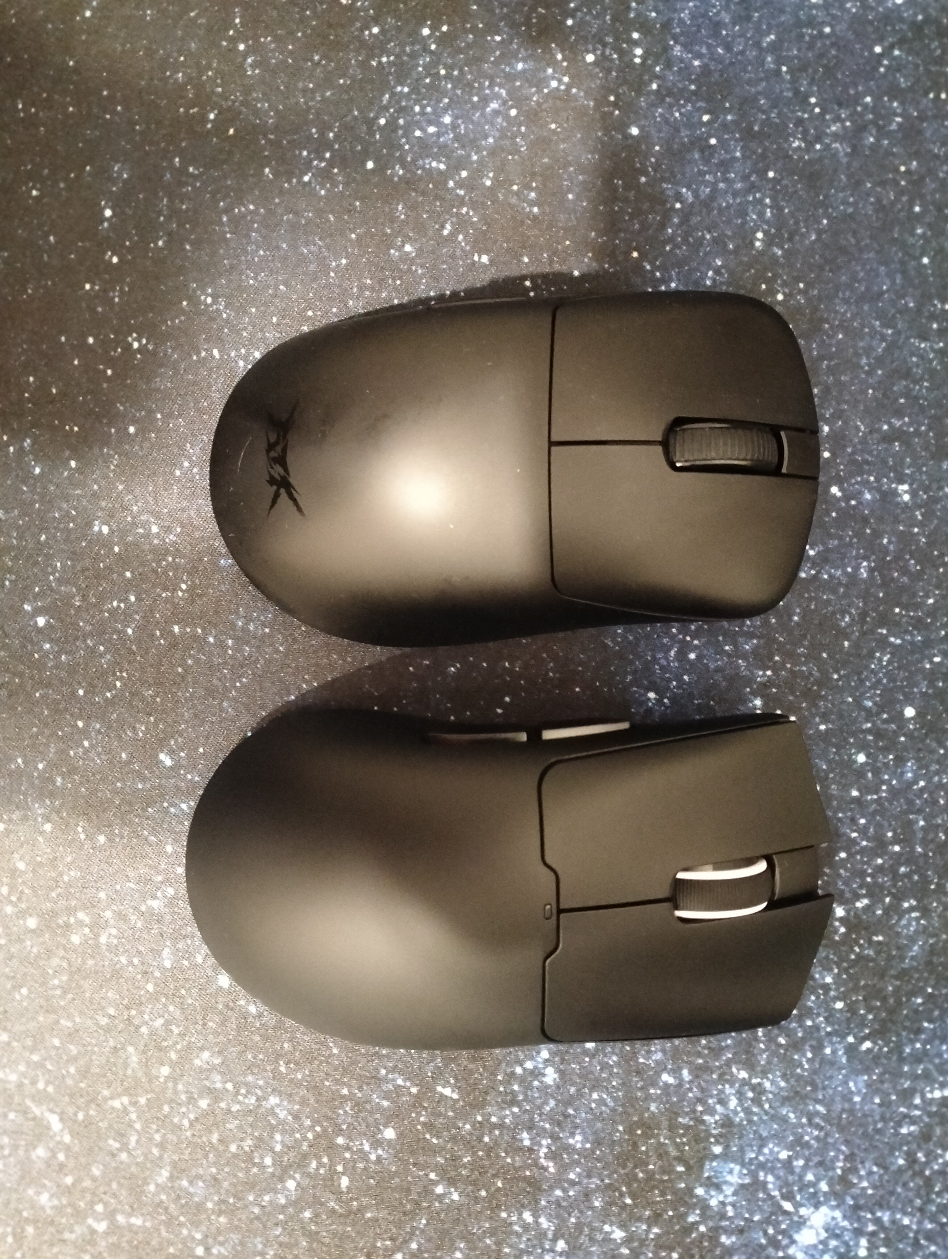 Рядом ATK z1u, евадн в моей 19х9 руке лучше лежит. А вот с кликами опять мне повезло. ПКМ нажимается, вроде, приятно. А вот лкм жмется совершенно по-другому, более мягко расхлябанно и невнятно. По размерам сами плодадки под пальцы почти одинаковые, поэтому клик должен быть одинаковым, дело явно не в том, что это эргономика. В ATK вот тоже асиметричная форма, да еще и кнопки по размеру откличаются, но микрики нажимаются одинаково. Штош...
