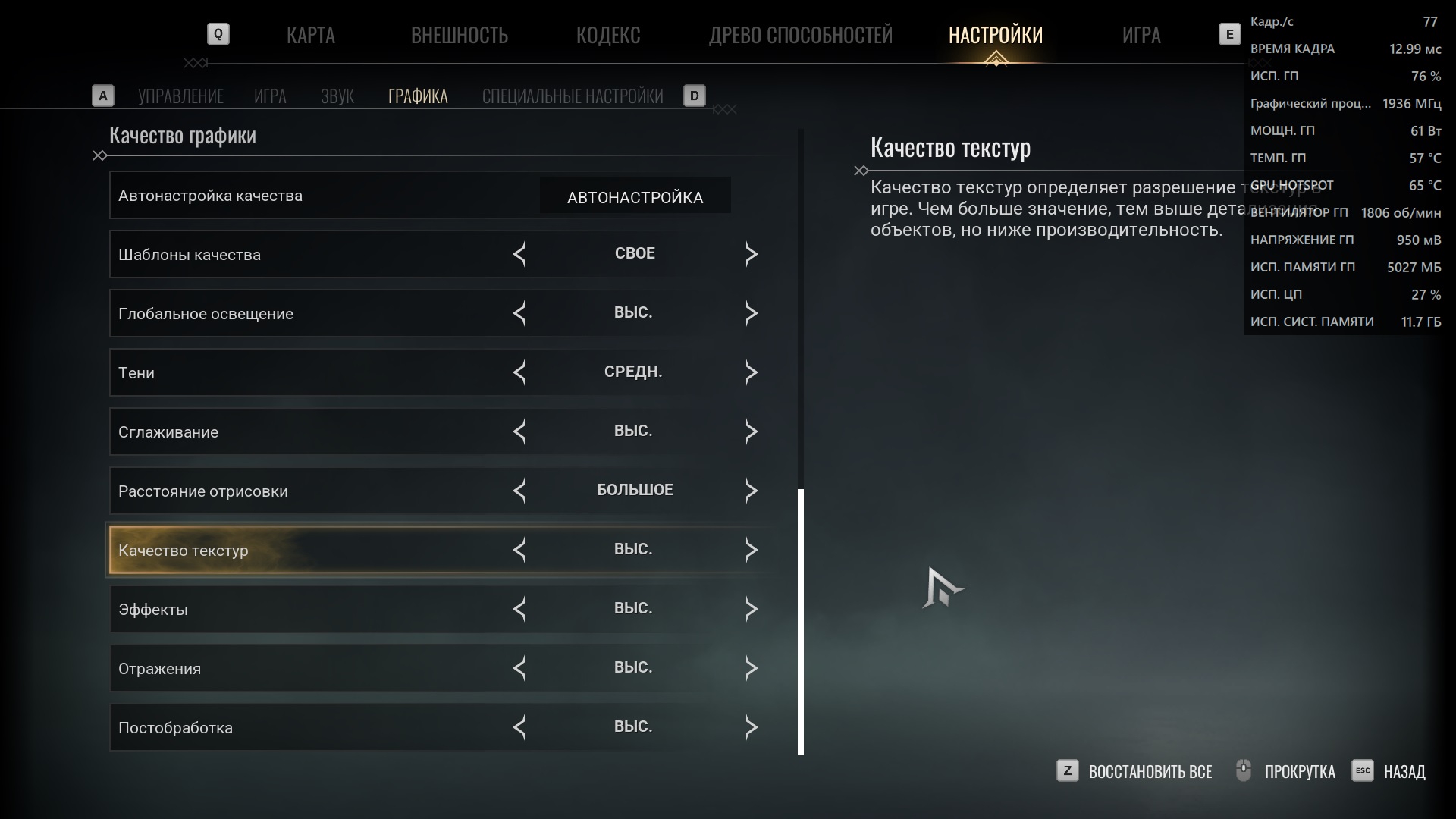 >>7573276 На хуй низкие текстуры? Включаешь максимум графики текстуры высокие, все ультра, а детализацию на среднее и отражения на высокие и фпс такой же как на низких, можешь и детализацию и отражения повключать они хорошо графона дают но и жрут много только перезагружайся после изменения настроек