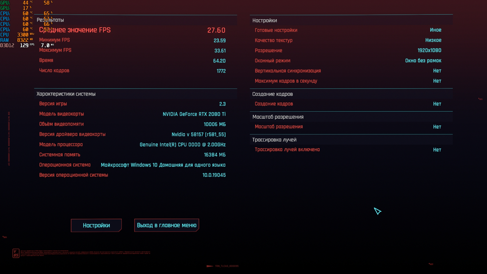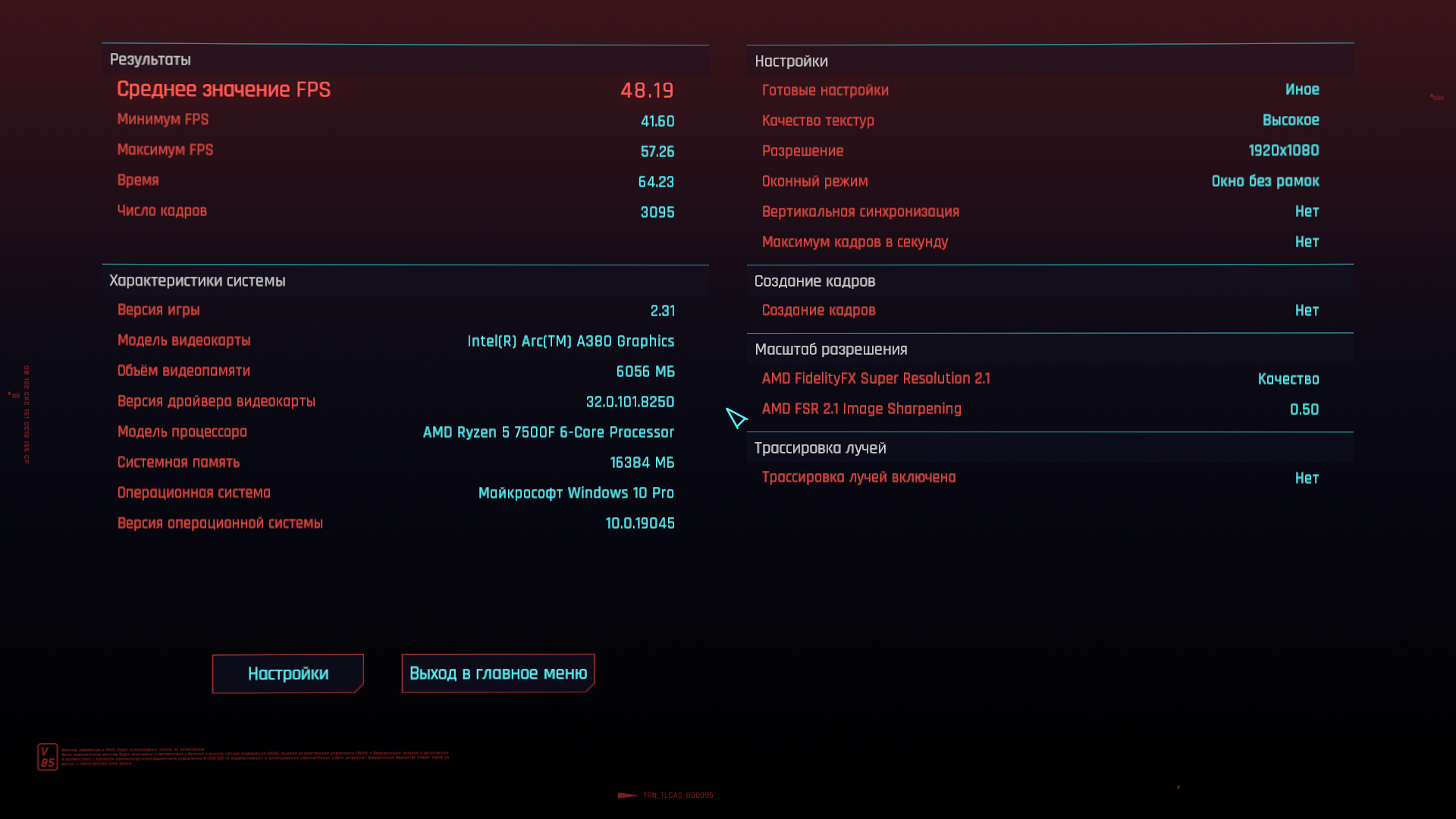 Бомж-бенчмарк-тред. Для понимания, на что сборки способны на практике, собираем результаты в бенчмарке киберпанка 2077. Игру качаем с рутрекера, портабл(148.8гб), настройки минимальные с изменением фср2.1 на баланс. Например благодаря этому тесту, видно, что производительность рыкса+4\8 = 4\4+п106-100, профита от 4\8 нет, т.к. упор идет в карту, но при этом сборка с п106 выходит дешевле.