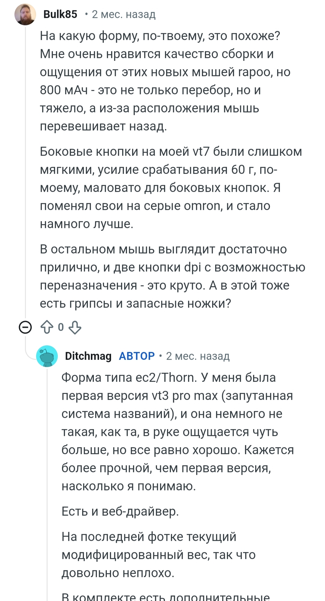 Пришла VT0 gen2. Это мой мейн! Позже напишу подробней, а пока задавайте вопросы. Мышка очень удобная, софт супер, что веб, что приложение. Сток глайды на хорошем уровне, можно даже не менять. Цепкость мышки ебейшая, донгл мелкий, с диодом, на переходнике резинка. Кнопку на пузе можно программировать. Блядь, эти китайцы все продумали. 3600 всего, пиздец.