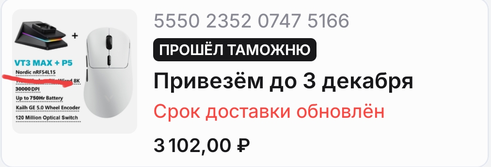 Пришла, вчера забрал. Жаль, что не было фиолетовой когда заказывал. С глайдами без крышки масса 56г. В базу действительно сложновато попасть дном мыши, потому что целиться нужно её жопой, но наконец-то не нужно держать на столе лишний провод или дёргать туда-сюда передатчик. В руке лежит лучше чем zpw max, колесо тоже намного приятнее. Когда в первый раз включил, решил сразу по проводу обновить firmware мыши (кстати в макулатуре которая к мыши прилагается нигде нет адреса сайта, где можно скачать по, а у них как минимум три блять сайта разных), выдало ошибку, мышь отрубилась и я насрал в штаны. Пришлось закрывать ПО, переподключать мышь, со второго раза обновилось нормально.