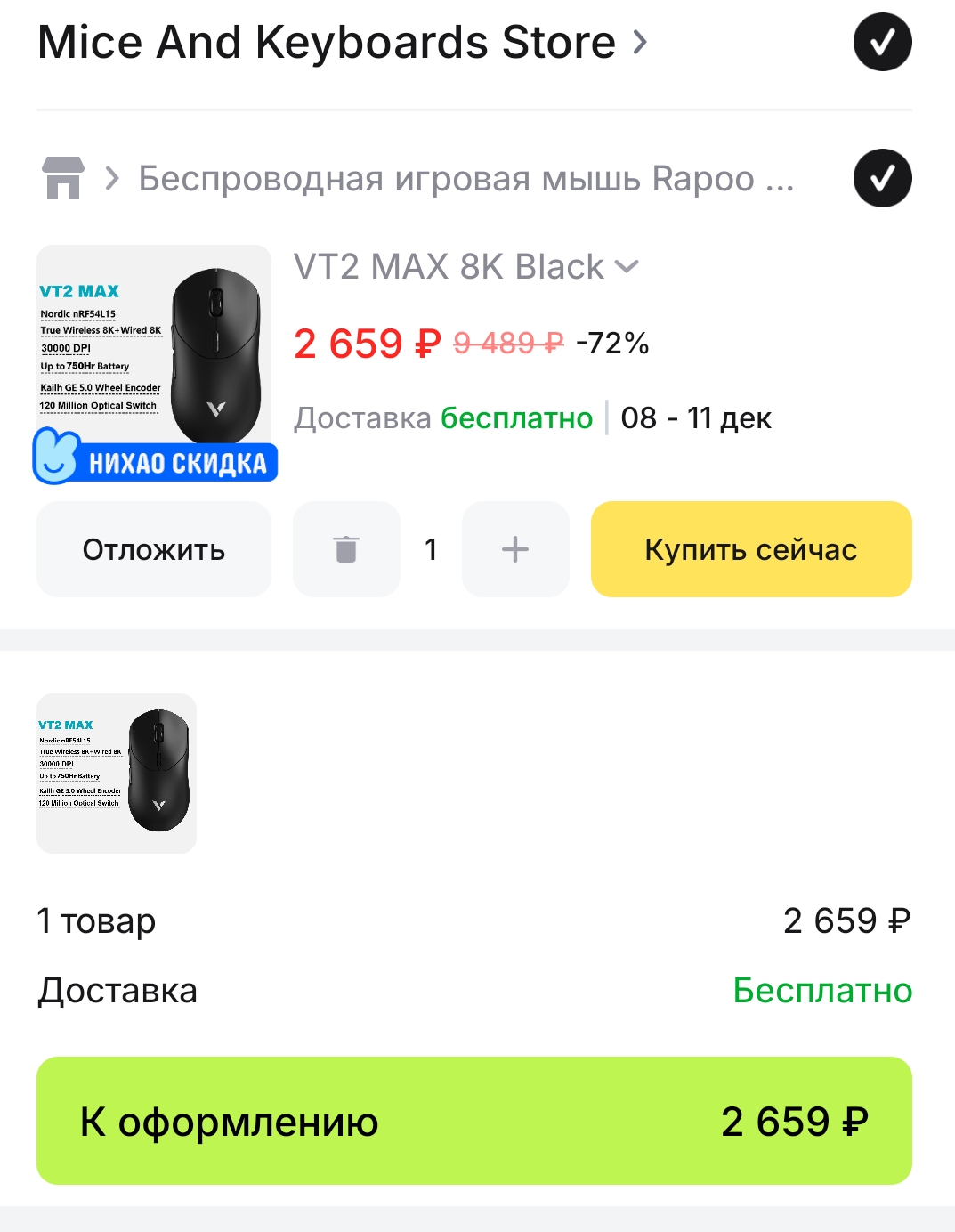 >>7573433 Объективно, эта мышь стоит ~4-4.5к абсолютно легко, так что тут ноубрейнер. Ещё и универсальная симметрия, клон суперлайта. Без комментариев. Сам такую же в начале декабря. >>7573473 Обиженка. >>7573478 This. Сам в ахуе от щедрости продавана. >>7571551 Тот чел, если я правильно понял, имел в виду, что ВТ0 можно за 2600р урвать. И это правда, но есть нюанс. А именно: цена в ~3200р была только у одного продавана с околонулём продаж и очень долгой доставкой, если к ней накинуть -500р промо на первый заказ, то в теории она могла бы выйти в районе 2700р. Но из минусов: продавец без отзывов, ждать дохуя, на али ты до этого уже наверняка что-то заказывал, промо не применить. А за несколько аккаунтов с одного мак/ип/... али вроде как выдаёт пермач сразу на все. Такое, короче. Сам заказал с озона за 3600р, ни о чём не жалею, жду на днях. Чел вон выше по треду уже на днях получил от того же продавца. >>7573488 У них как обычно приколы. Заказал тут себе уши, доставим до 25 числа. В итоге вчера, 25 статус меняется на «доставим до 1 декабря», а через час «посылка в отделении». Лол. Сходил, забрал. >>7573793 Ты заебал душу травить, лол, я всё ещё в ожидании. Алсо, крышка не нужна, базарю, попробуй. Глайд станет ещё лучше. >>7573791 Ебать их там дохуя за 600р. Я на ESP NIGGER ICE DOTS V2 сижу, кайфовые, они чуть дешевле, но их и кратно меньше. Возможно, стоит попробовать.