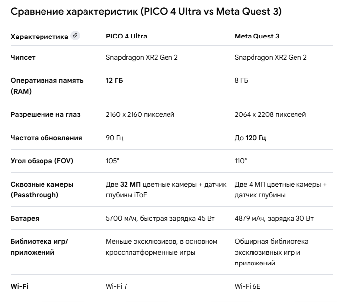 Я бы брал пико4 ультра, он дешевле тыщ на пять, лучше АКБ который сзади для лучшего распределения веса, нет анальной привязки к серверам меты, камеры 32 мегапикселя против 4 у квеста 3 и оперативки 12 гигов , а квеста всего 8.