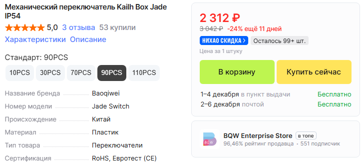 >>7570243 Лень искать по запчастям, но, похоже, собирать конструктор действительно легче, чем искать готовую, подходящую по всем требованиям. >>7570259 > Синие свитчи это мусор. Я хочу потестить их, до это были брауны и реды. >Не из-за щелчков, а из-за щелкающего механизма в них. А что там с механизмом?