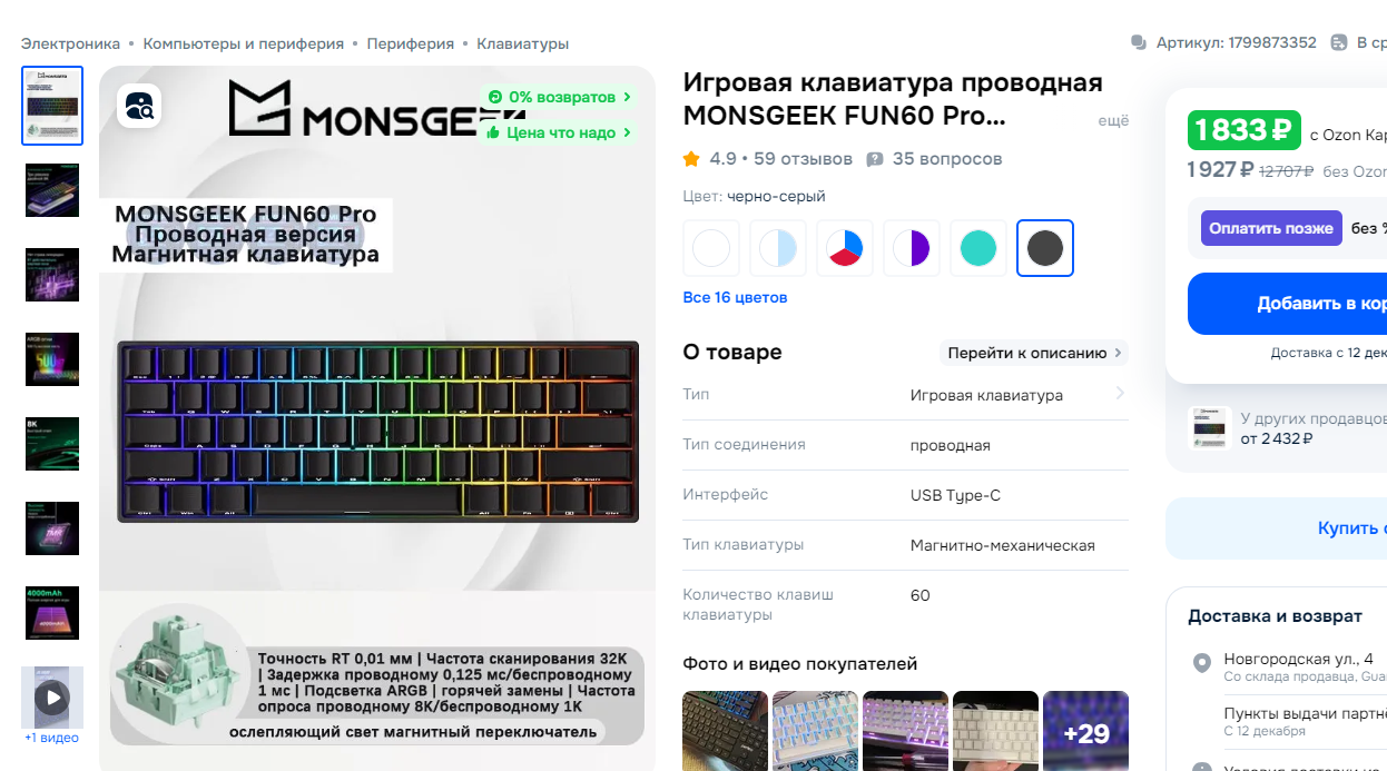 Базовый уровень знаний: https://habr.com/ru/post/140454 Лучшая клавиатура в пределах 6к: Mchose = Aula = Ajazz = Epomaker = Leobog. Выбирай нужный форм-фактор, смотри что дешевле.