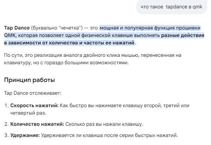 кстати там переключение на слой при удержании реализуется не через mod tap, а есть отдельно запиленный layer tap еще есть еще есть Combos, Space Cadet Shift, Leader Key, Auto Shift в общем мощьь