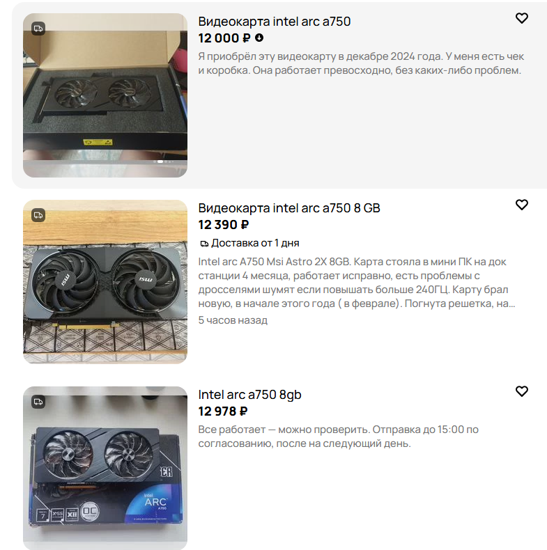 >>7587990 На газоне по низу рынка 7600 27-28к, 5050 - 28к, б580 - 31к, 4060 - 36к, 7600XT 16гб 42к. Тут каждый сам решает, нужен ему запас врам или нет. >А бомжарские A давно заброшены и сосут даже за тот прайс что их сливают, при том что проблемы там не исправлены. Вiрю. Как тут >>7587668 не верить.