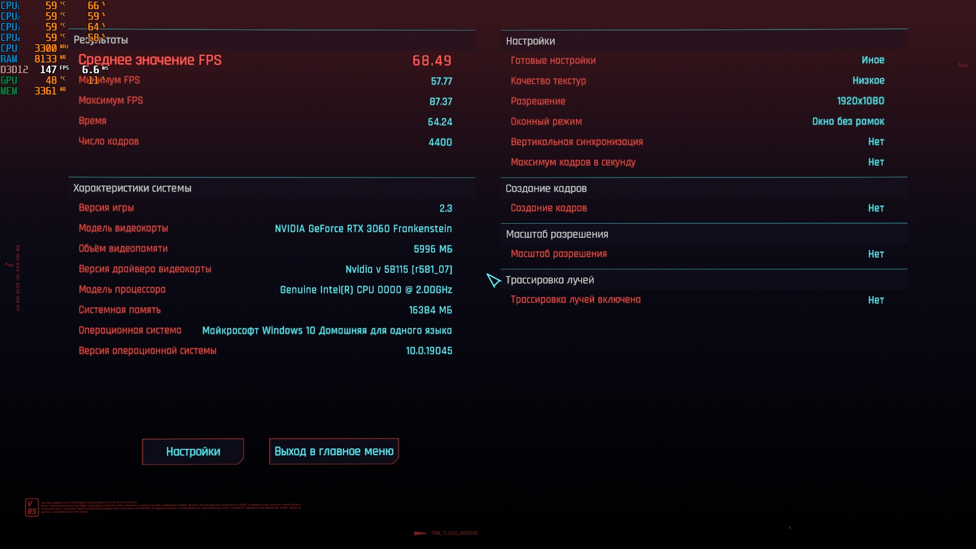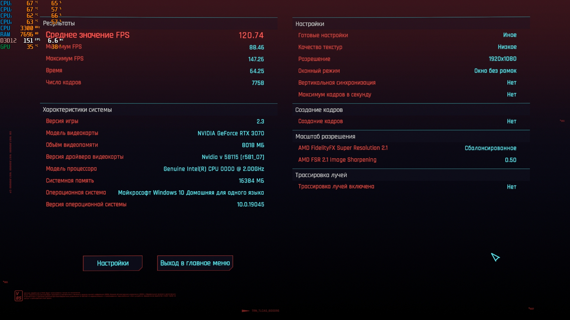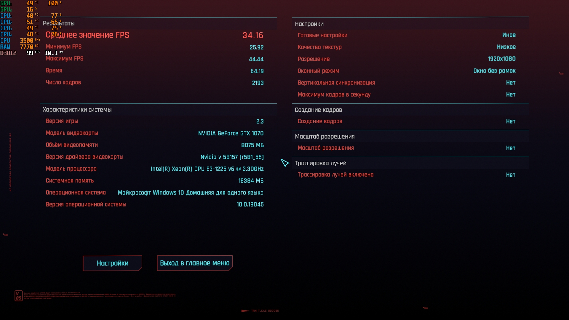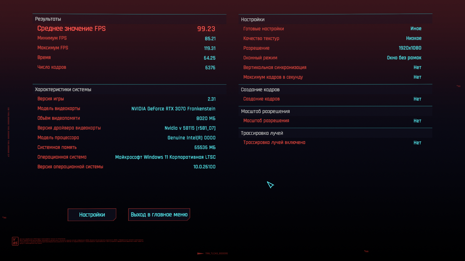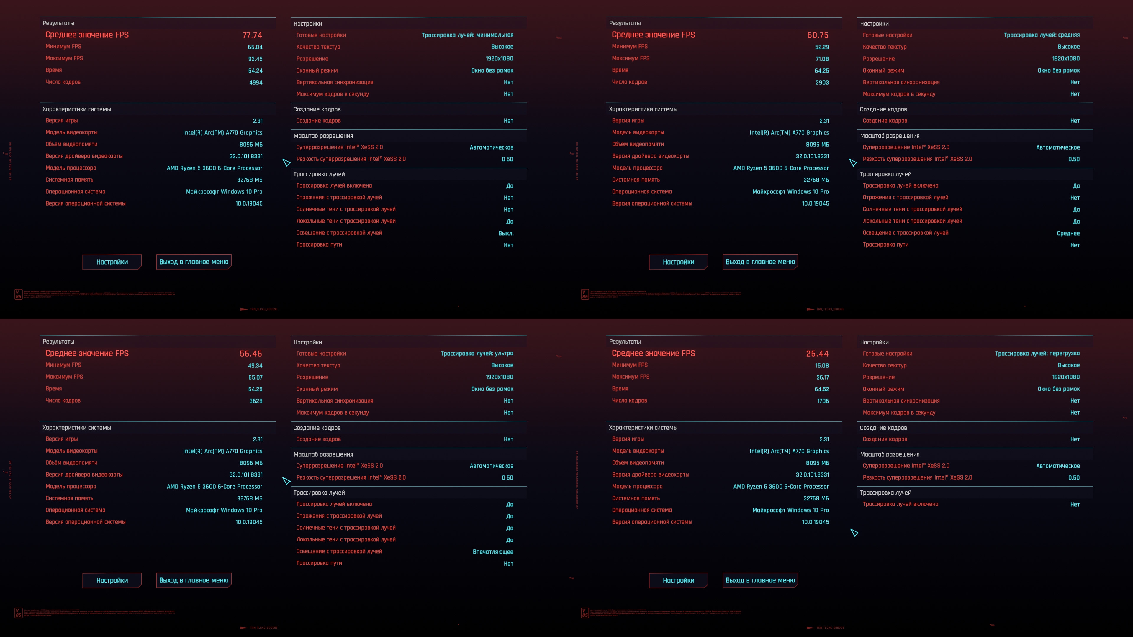 Бомж-бенчмарк-тред. Для понимания, на что сборки способны на практике, собираем результаты в бенчмарке киберпанка 2077. Игру качаем с рутрекера, портабл(148.8гб), настройки минимальные с изменением фср2.1 на баланс. Например благодаря этому тесту, видно, что производительность рыкса+4\8 = 4\4+п106-100, профита от 4\8 нет, т.к. упор идет в карту, но при этом сборка с п106 выходит дешевле.