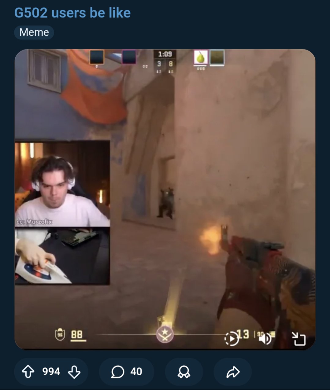 Мне когда лет 16 было я тоже думал что увесистая мышка круто, лучше аимить можно, ощущается вес и тп, сейчас 20 лет спустя когда популярны стали реально легкие беспровлдные мышки и я сижу с такой, я понимаю каким долбаебом был. Ребзя вам не нужен утюг 150 грамм, у него 0 приемуществ. Даже если вы думаете что вам не нужна 60г мышка потому что вы не "педики рахиты девочки" мешать она вам блять не будет, а потом мб поймете что это реально лучше чем утюг.