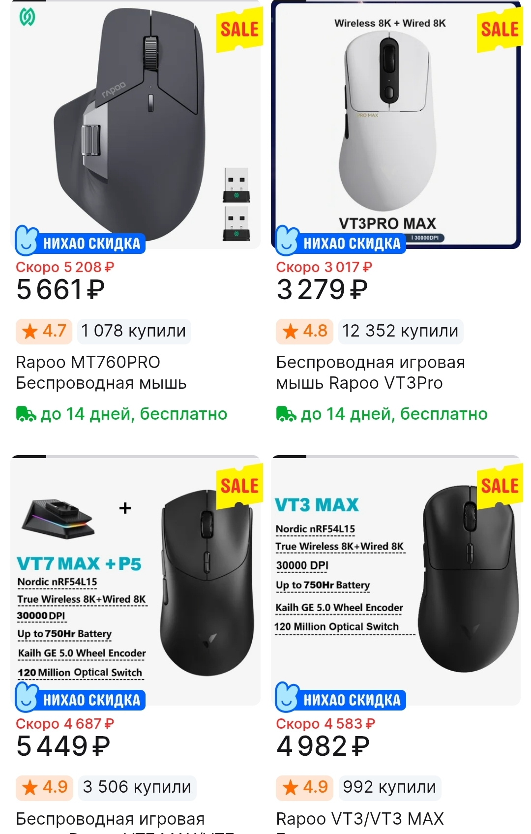 Новинки с Nordic 54, топ начинка и автономность Оптика энкодер: Razer Deathadder V4 Pro, RAWM Leviathan V4, Rapoo VT0 Air MAX Механический энкодер, по форме: Sora: Rapoo VT0, ATK Duckbill, G-Wolves LYCAN 8K Viper mini: Rapoo VT1, ATK F1 v2 Superlight и ко: Rapoo VT2, ATK A9, ATK X1 v2, VGN F2, Attack Shark X8 Эргономика: Rapoo VT3, VT3S, VT7, ATK Y9, VGN Y2