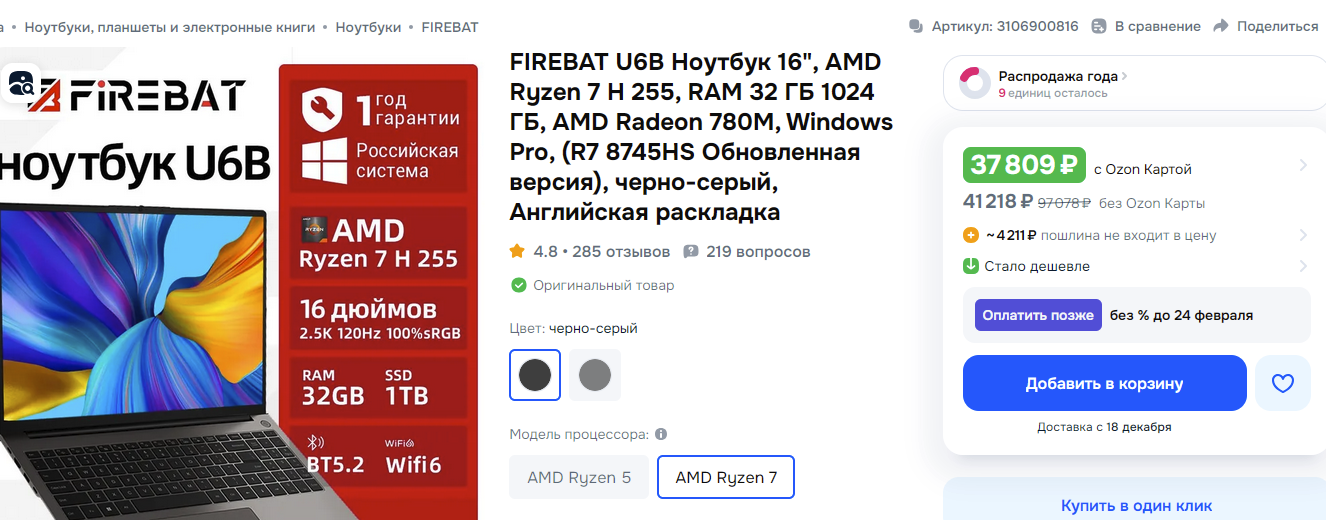 >>7586838 Отзывов - нет, глянул вопросы: по поводу заводской пломбы - какую-то хрень написали, но вскрыто или нет не написали, вопрос про анг. клаву вообще заигнорили. Продавец - сам озон. Может тогда лучше в ДНС заказать, подороже конечно выйдет, но там хоть ноут покрутить можно и отказаться.