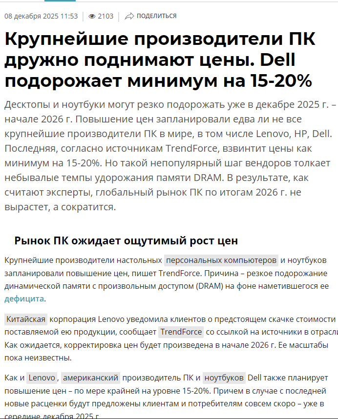 >>7602102 Не соберешь сейчас нормальную пеку в этом бюджете тк цены на раму уже пизданули. Бери ноут пока они совсем не улетели в стратосферу - цены на нв карты пизданут в первом квартале тк закончатся старые поставки + куртка 30-40 процентов жфорсов под нож отправил.
