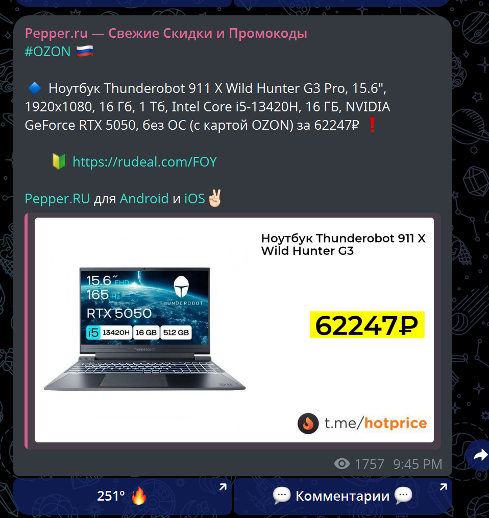 >>7602404 Вот тебе ещё один каловый Thunderobot с чуть более днищенским экраном, но таким же дно-CPU и дно-GPU но за 62247 деревянных, можешь сэкономить почти 30К рублей.