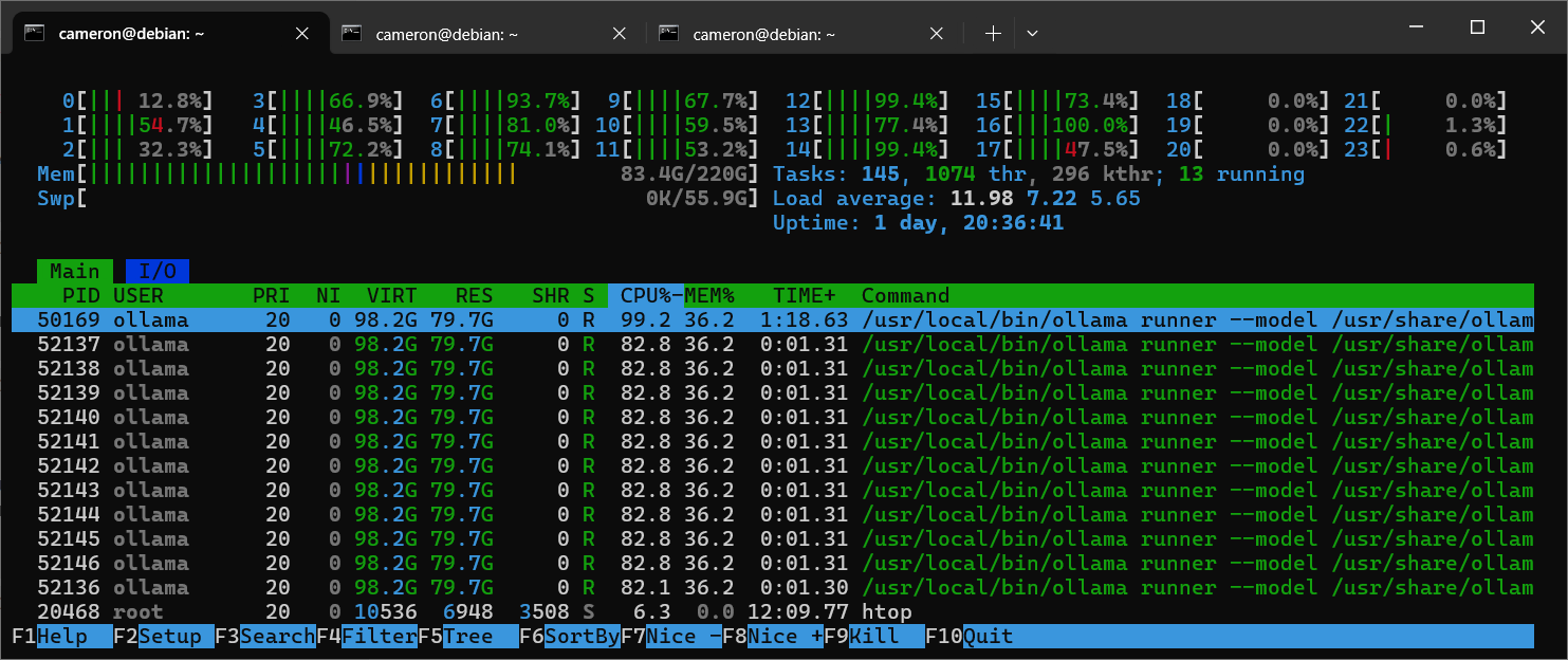 >>7599740 Если только на процессоре и с контекстом 4к, то надо 50 гигов ОЗУ. Если на процессоре и с контекстом 128к, то надо 90 гигов ОЗУ. Если процессор+видиокарта, то потребление памяти очень странное. Я пока не понял.