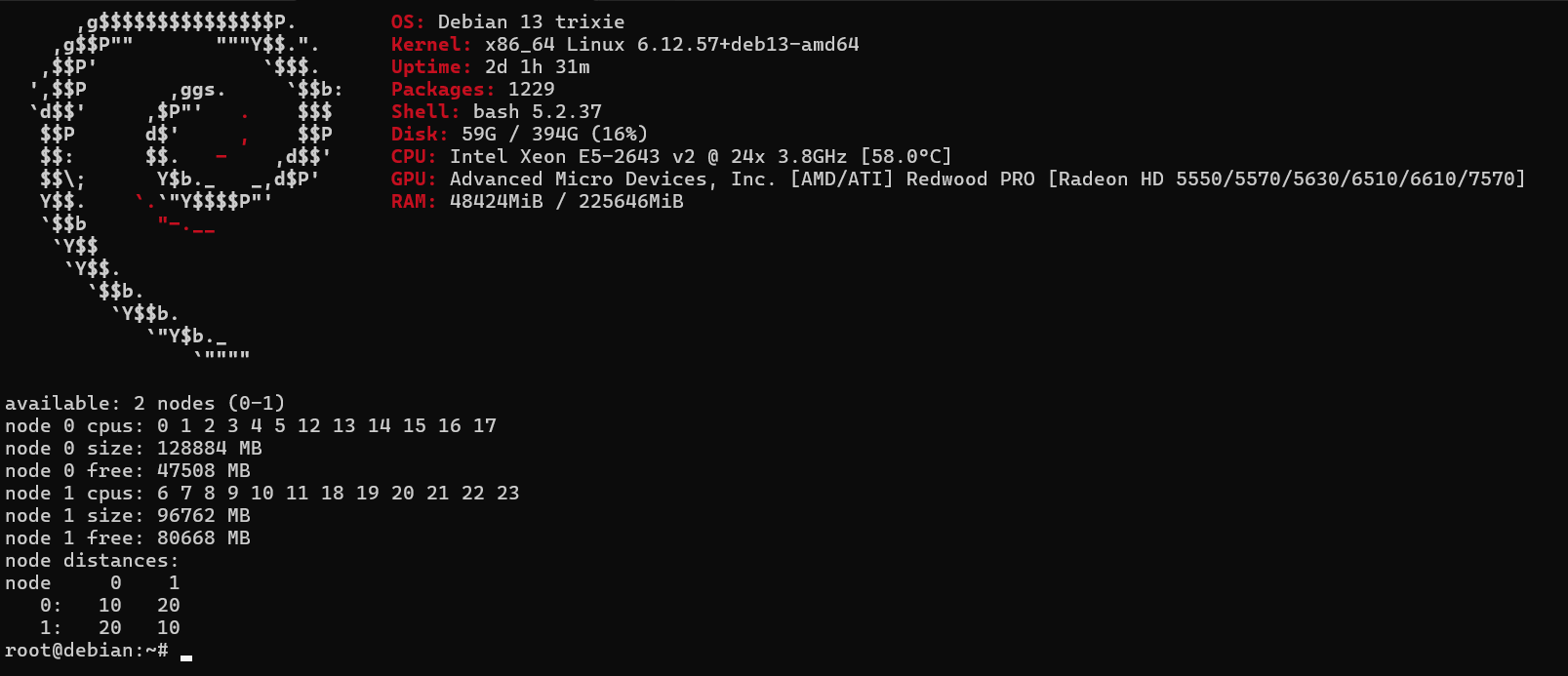 >>7598765 Только не говори что она в NUMA умеет. Тебе оптимальнее было видяху гигов на 12 и 8 ядерный i7 с 64 Гб DDR4, было бы быстрее в полтора раза, чем низкочастотные зивоны насиловать.