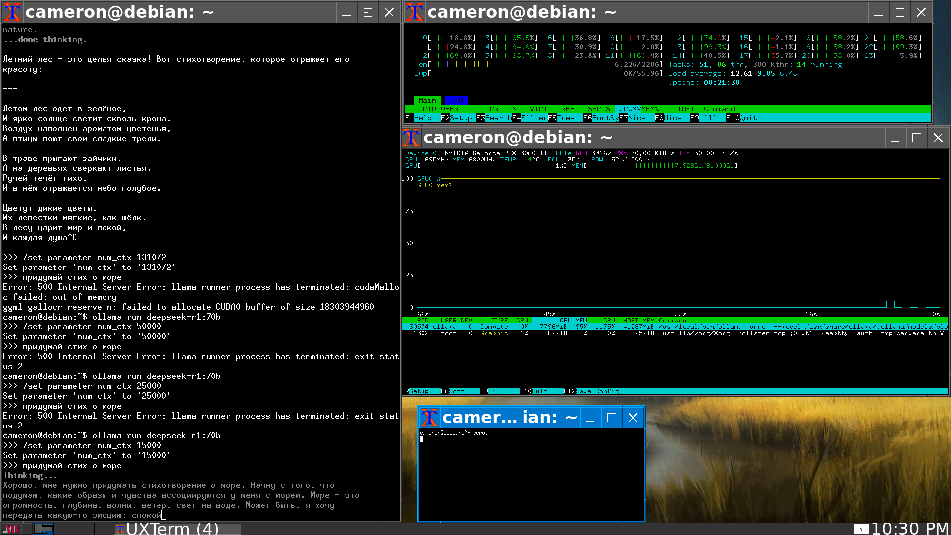 Последнее обновление на сегодня и ливаю. Удалось увеличить контекст до 15к. Это похоже предел в связке видиокарта+зион v2. При больше контексте крашится. Гугл предложил 2 варианта: а) Перейти на винду, где управление памятью как-то отличается или б) обновить железо чтобы был ресайз бар.