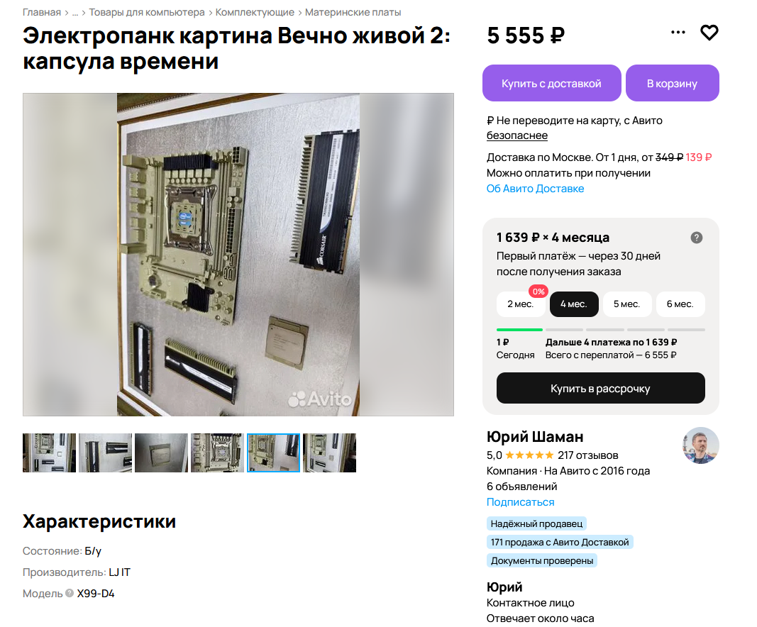 >>7588249 (OP) Подскажите, анончики, это сколько стоит примерно на рынке сейчас? Мне случайно досталось и не нужно особо, а денежка очень нужна. x99 b5 + e52630lv3 + samsung какой-то на 16 всего.