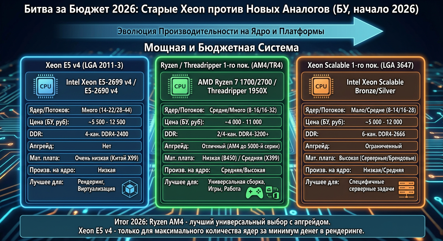 Оптимальные процессоры: 1660v4, 2667v4, 2666v3, 1650v4, 2643v4, 2643v3 и 2680v3/2678v3. Для совсем "экономящих" имеются 2620v3 и 2630Lv3. Процессор для тухлошизов и РАБотяг, которым не хватает 2678v3 есть 2697v3 и в 26XX v4 серия. Актуальные процессоры, работающие и с ддр4 и с ддр3(в т.ч. дешевой серверной) - 2666v3/2673v3/2678v3.