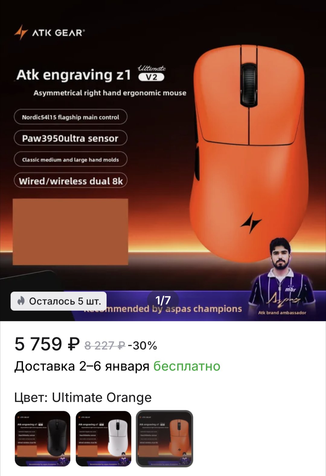 Завтра придет ATK f1 v2 ultimate, сидел на первой версии год, единственная мышь которая повысила кд в кске на дохуя процентов и позволила мне сделать новые рекорды в аимках, я считаю это лучшая мышь для средней руки как и hitscan hyperlight