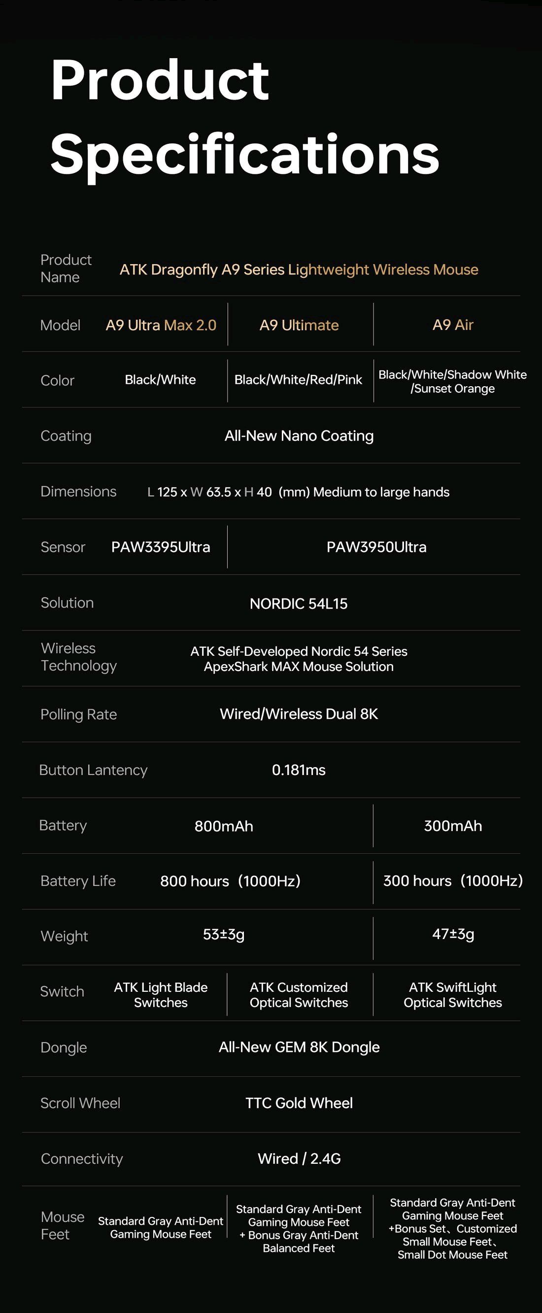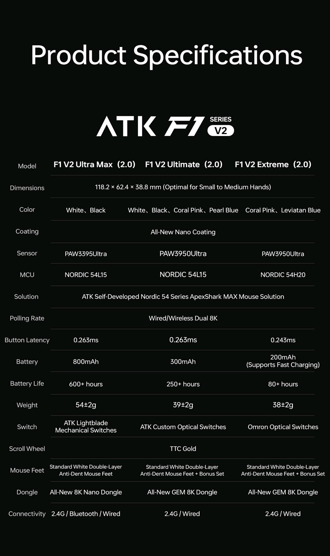 VT - 3395 сенсор, механические свитчи, механический энкодер, 800 mah VT - MAX 3950 сенсор, оптические свитчи, механический энкодер, 800 mah VT* Air MAX - 3950 сенсор, оптические свитчи, оптический энкодер, 300 mah