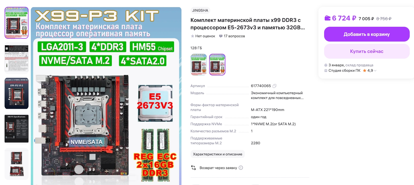 >>7598320 Видел варианты мамок дешевле, типа как в шапке, но на каких-то совсем древних чипсетах, с двуханалом и без юсб и сата 3.0. Да и потянут ли они 2666v3 по питанию? Алиэкспресс как я понимаю всё? Авито не хочу, живу в пердях а доставка хз, не пользовался ни разу.