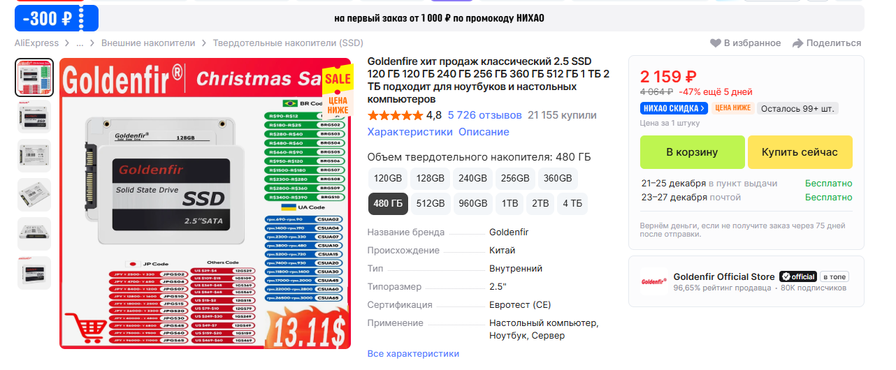 >>7591324 В 2023 году, но вот на 500 Гб на ади прямо счас, регаешь новый аккаунт на мамку, и забираешь хоть 480 хоть 512 за 2К, а можно вообще на 960 Гб за 3500.