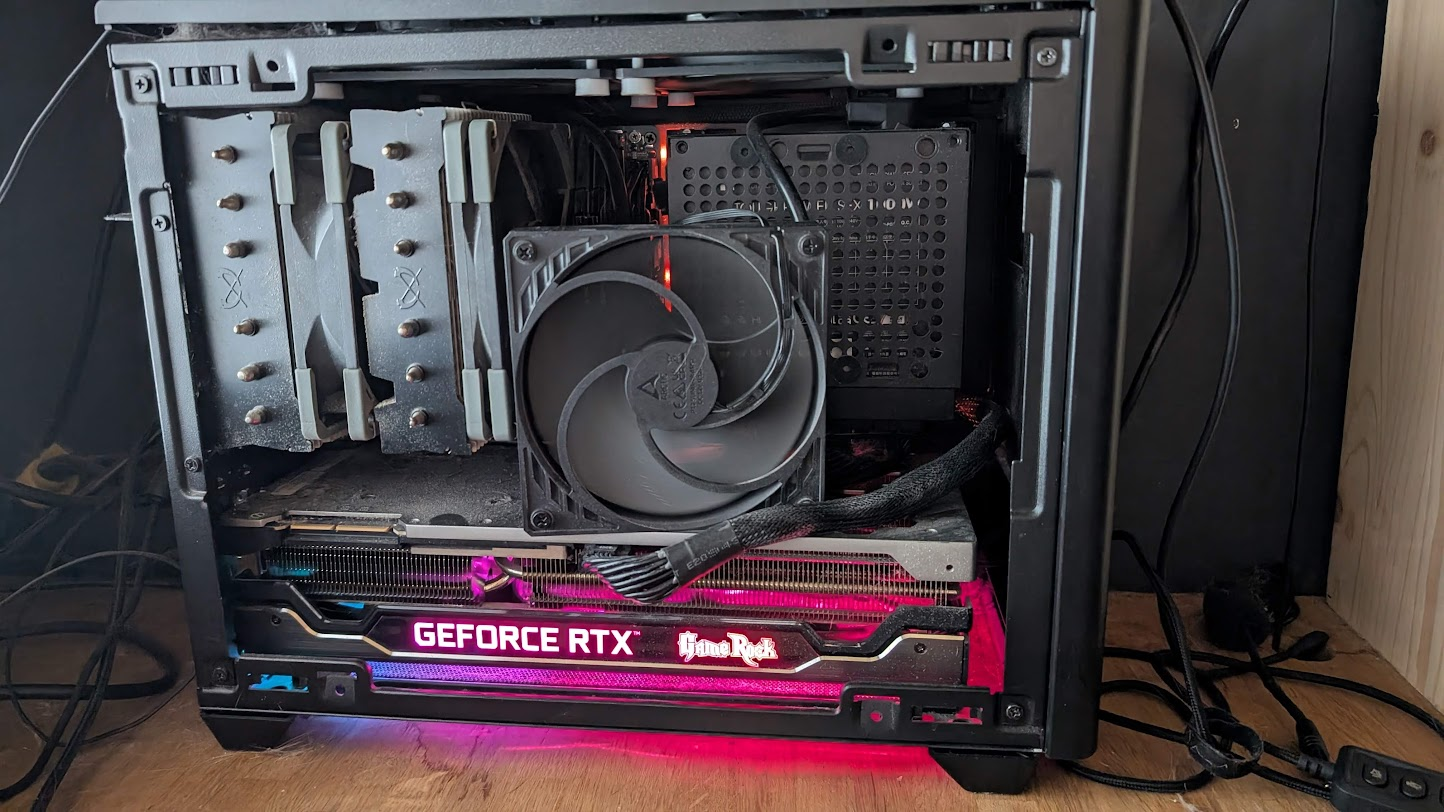 Как думаете, эту печку реально охладить лучше, чем сейчас? 3900х и ПАЛИТ 3090Ти Кулер Scythe FUMA 2 Сейчас сделал так, что башня засасывает воздух с задней стенки, наверху два вентилятора и один на боковой стенке работают на выдув, то есть воздух просасывается сзади через цпу внутрь и выдувается вверх и вбок. ГПУ старается выжить как-то сама. Но она при работе бывает греется до 85 градусов, думаю норм или можно холоднее сделать