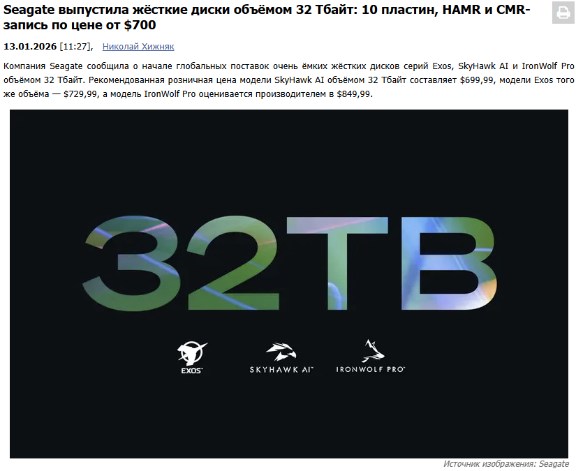 >>7608292 Я с утреца проебал глазами слово "внешний", ну да похуй, пусть все равно инфа в треде будет, авось какой-то анон увидит и это его надоумит успеть забежать в последний вагон жестких дисков по не самым ебанутым ценам.
