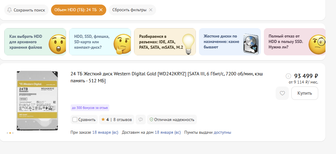 Ты либо покупаешь сейчас 20/22 тб, пока волна повышения не дошла до них и они не начали стоить 100к, либо платишь 4-кратную цену. ВСЁ Больше вариантов у официалов по жестким дискам нету.
