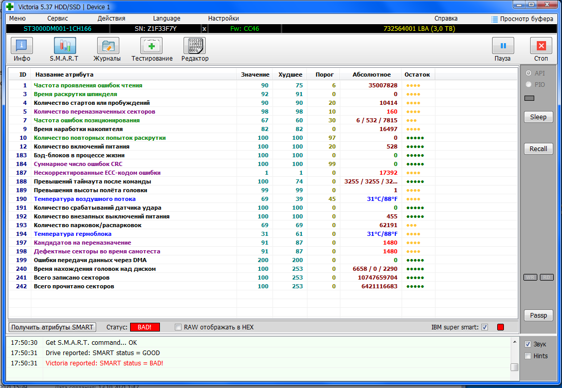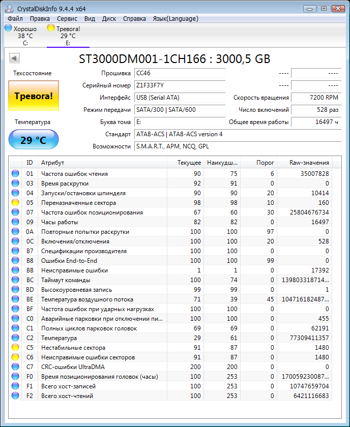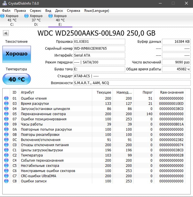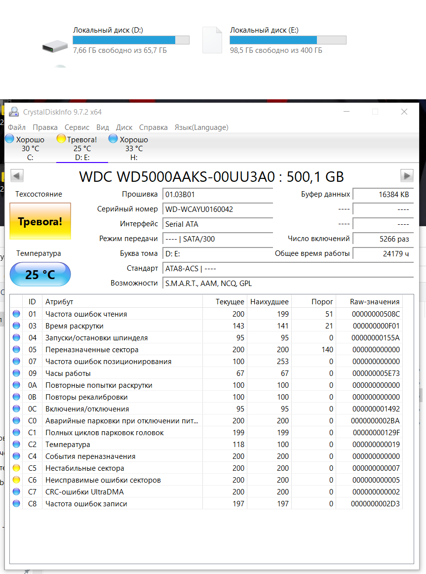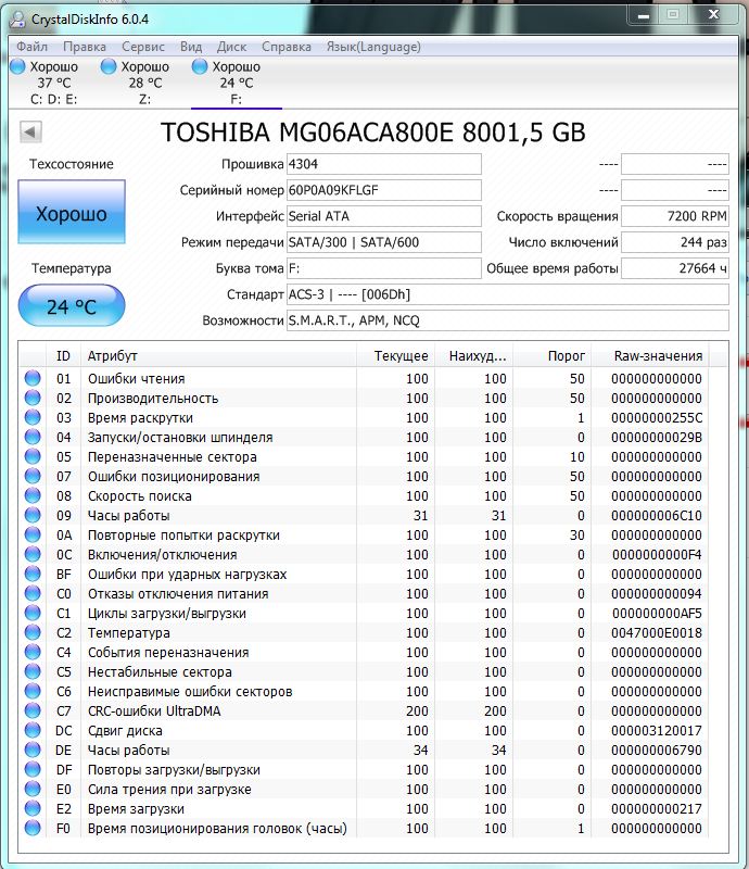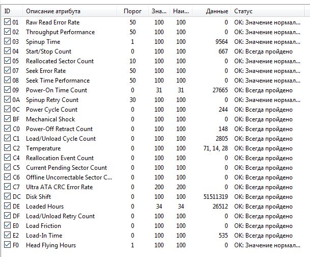 >>7638098 >>7638276 >>7638547 Короче, забрал я его, этот смарт не от него, но у моего такой же, разве что число включений чуть меньше и наработка 26к, а не 28, попробовал на него позаписывать/поудалять большие файлы, хотя 20 гигов для него это вообще ничего, работает бесшумно, разве что изредка постукивает, но это вроде для них нормально. Вику пока не гнал, но мне даже страшно сколько времени это займёт, тут и трёх дней на проверку не хватит...