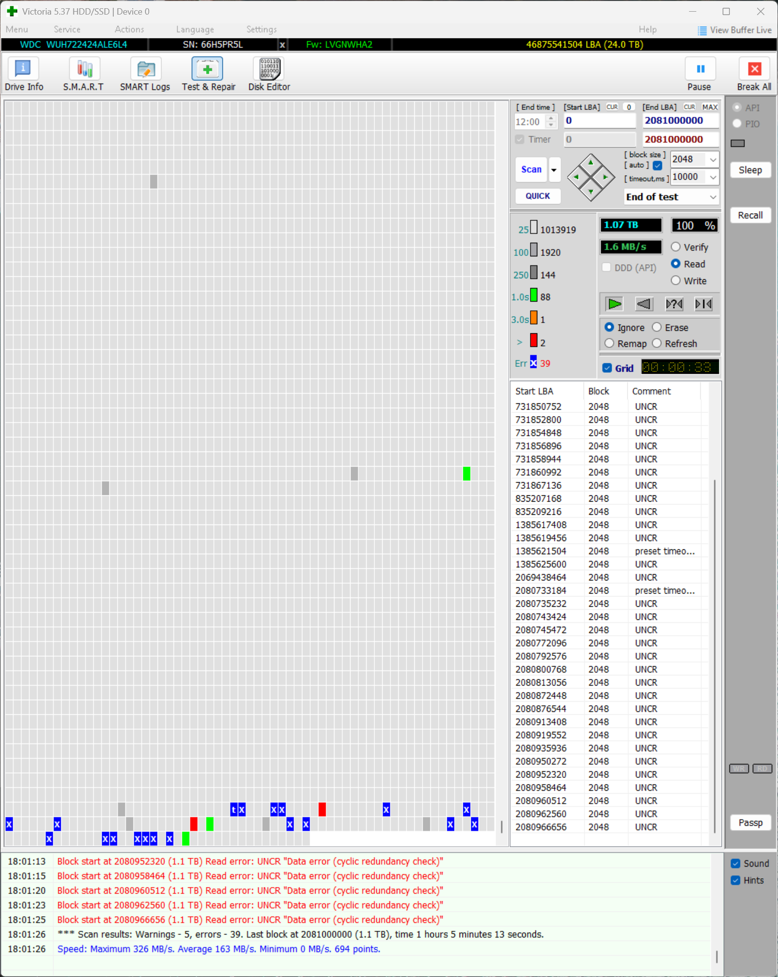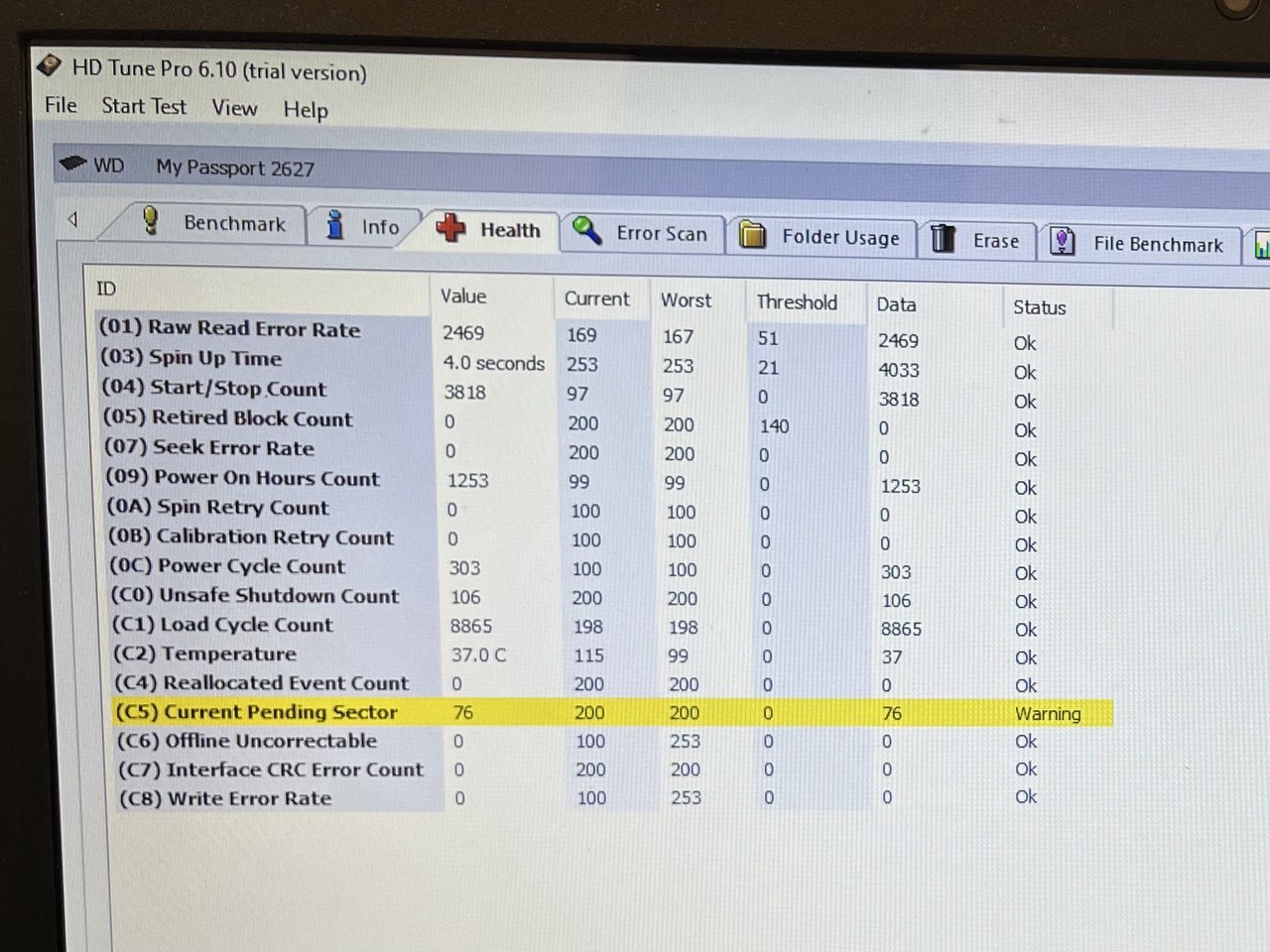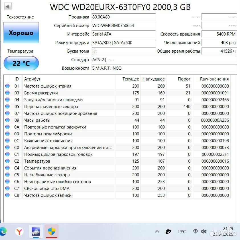 >>7638098 >>7638276 >>7638547 Короче, забрал я его, этот смарт не от него, но у моего такой же, разве что число включений чуть меньше и наработка 26к, а не 28, попробовал на него позаписывать/поудалять большие файлы, хотя 20 гигов для него это вообще ничего, работает бесшумно, разве что изредка постукивает, но это вроде для них нормально. Вику пока не гнал, но мне даже страшно сколько времени это займёт, тут и трёх дней на проверку не хватит...