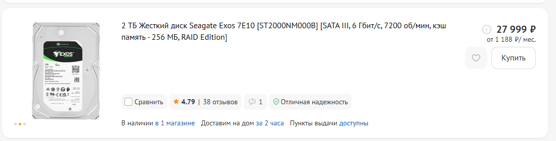Купил exos 14tb за 6к вместе с доставкой с авито. Норм? Из минусов щелкает при работе, но при этом пишет-читает, спросил продавца он тупо ответил "в описании всё написано, продаю как есть", а зачем продаёт хер его знает.