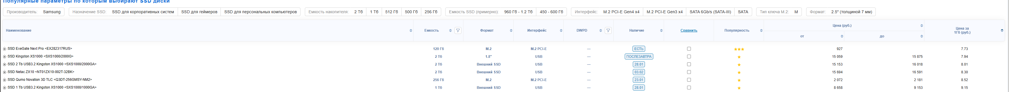 >>7641304 Ну хуй знает "сравнялись", самые дешманские сосоди стоят как невыгодно дорогие харды. Хотя можно найти неприлично дорогие харды вроде сказишных пятнадцатитыщников, там 80 рублей за гиг как в дорогих сосодях.