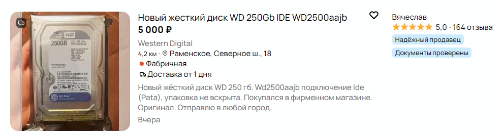 >>7645984 Лохито нужно мониторить часто, чем он мне и не нравится. Самые норм лоты бронируют очень быстро, не успеваешь продавану написать, как уже продано. А насчёт >>7644590 , этот хард мне предложила деваха, у которой я спрашивал насчёт лота WD green на 1тб за полтора косаря, который я не успел купить. Прислала мне в личку, мол, вот ещё такой есть, сча объявление поменяю, интересует? А пока я на работе ебалом щёлкал она и его продала. Купил в итоге пикрелейтед за 2500, потому что реально надоело на этом авито сидеть. Ещё я, кстати, видел, деваха другая готовый NAS комплект продавала, вот там она отдельно продавала wd black на 1тб то ли за 2, то ли за 3 косаря с норм кристал диском.