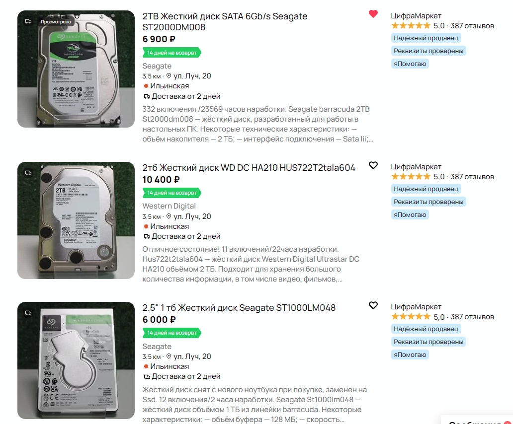 Аноны можете помочь? Хочу купить себе жесткий внутренний на 2tb. В магазинах нихуя нету, а в валберис озон одна паль. Я уже посмотрел тред, и аноны советуют брать бу с авито. Может есть ещё варианты?