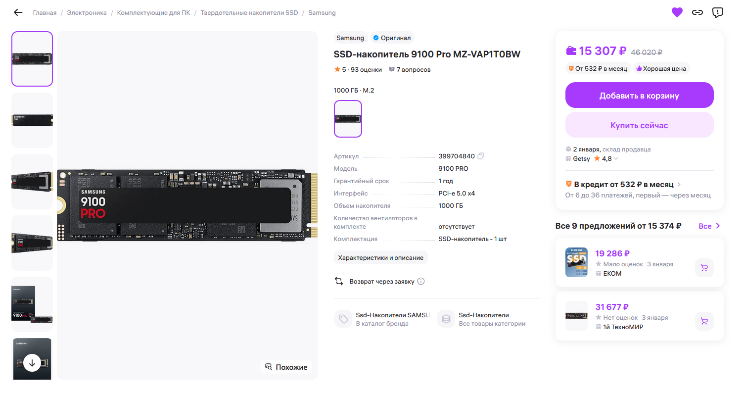 1) 21270 руб - Patriot Memory 2 ТБ Внутренний SSD-диск P400 V4 M.2 PCI-E 4.0 (P400VP2TBM28H) 2) 26383 руб - Samsung 2 ТБ Внутренний SSD-диск 990 PRO with Heatsink M.2 PCI-E 4.0 (MZ-V9P2T0CW) - хуй знает влезет ли с теплоотводом либо безрадиаторная версия на тыщу дороже в рыгарде 3) 31990 руб - Samsung 9100 PRO (MZ-VAP2T0BW) 4) 26917руб - Samsung 2 ТБ Внутренний SSD-диск 990 EVO Plus (MZ-V9S2T0BW)