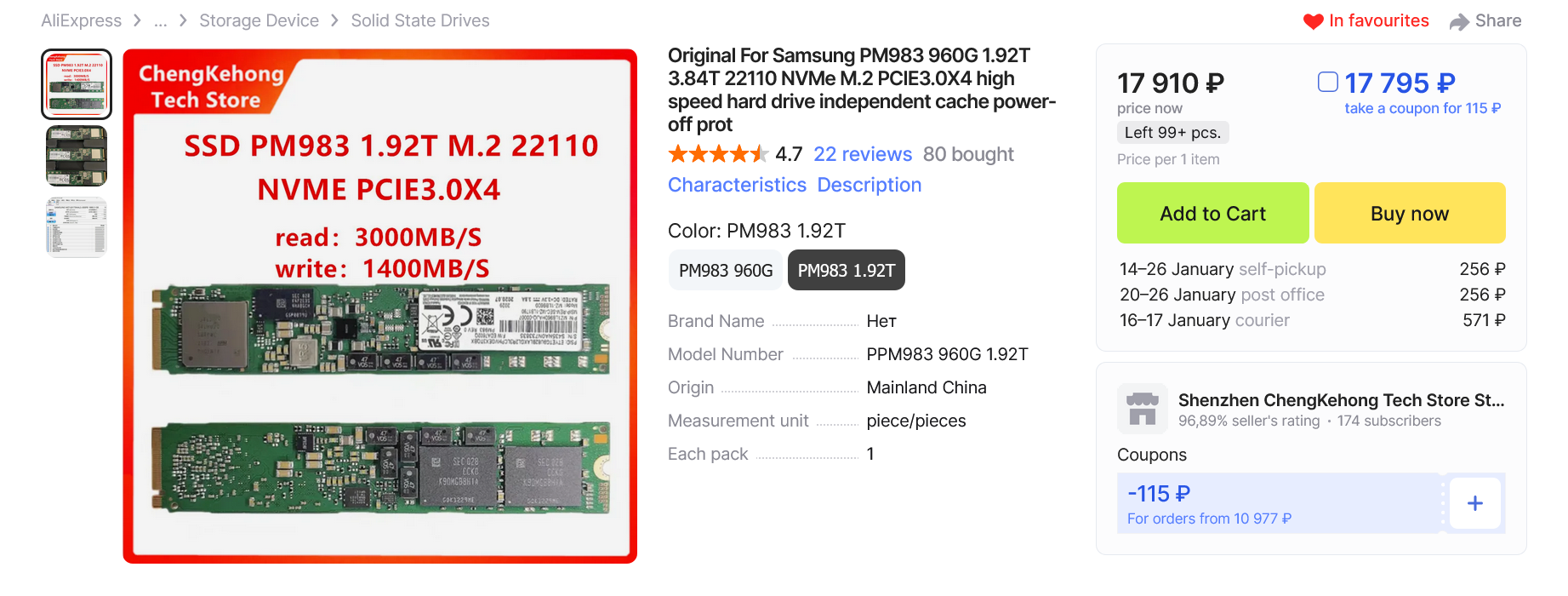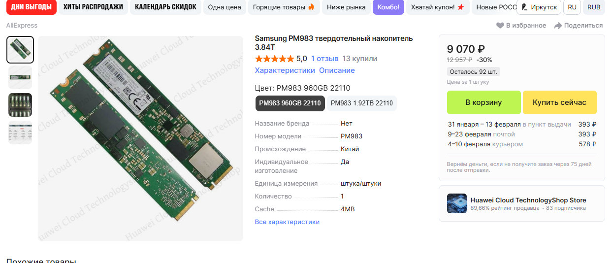 Однако при покупке смотри на рейтинг торгаша. Раньше PM983 бракованные не продавали но последние пару недель появилось дохуя подозрительных магазинов с заниженной ценой и низким рейтингом.