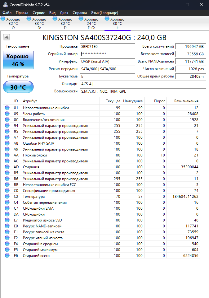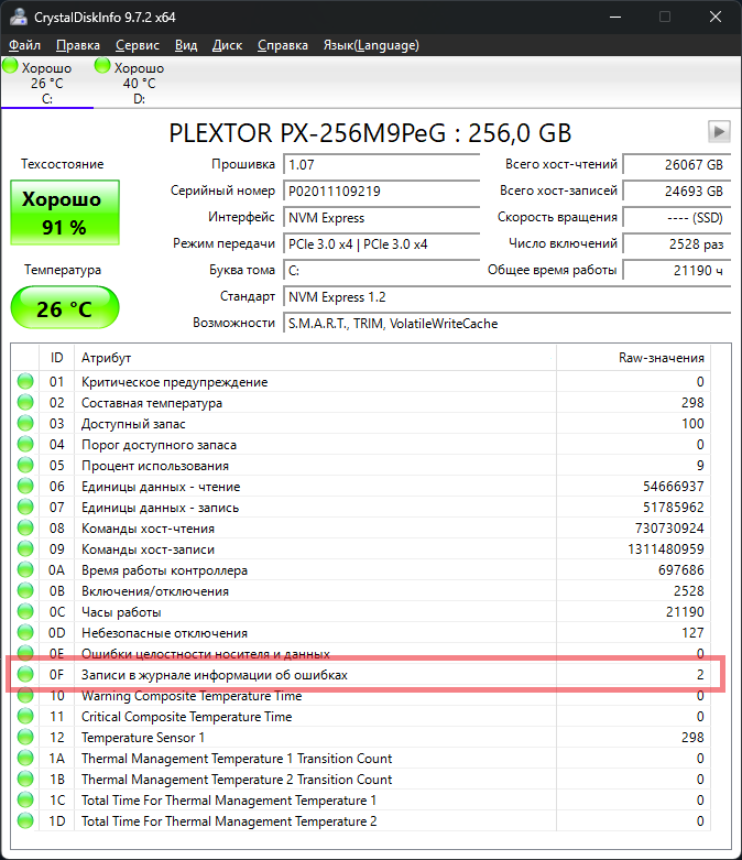 чекнул через crystal disk говорит состояние 100% заебись, но есть media and data integrity errors.