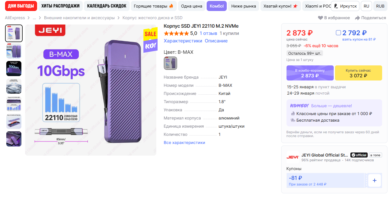 + нужно взять к нему кейс. Такой норм? https://ozon.ru/t/6justZX Только ждать почти месяц и как-то в моём понимании 7к дороговато за кейс. Еще в отзывах к кейсу прочел, что Samsung Magician не поддерживает SSD в MacOS и дает инфу, что диск не родной. Поэтому немного ссу, что диск не проверю на ориг.