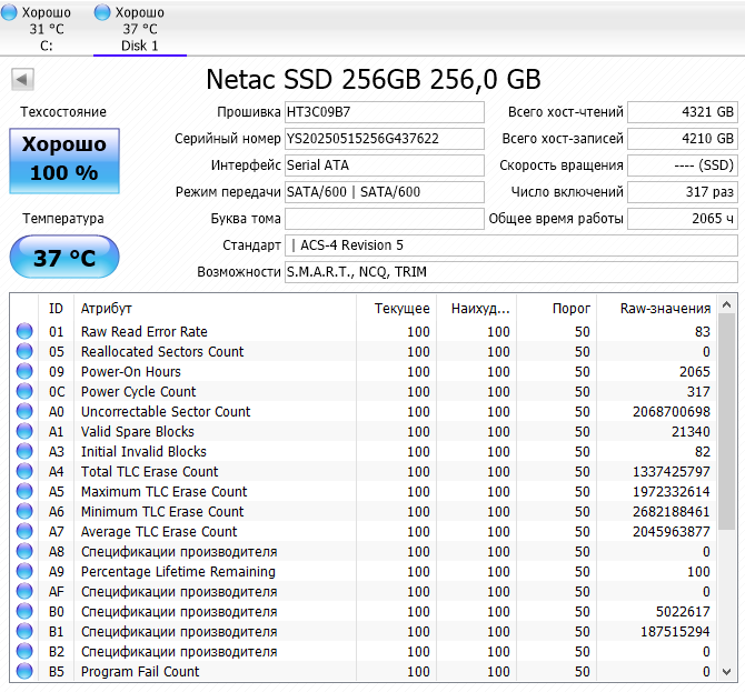 При вопросах о состоянии ссд по смарту переключай программу Crystal DiskINFO в десятичный режим! (ОП-пик №2)!