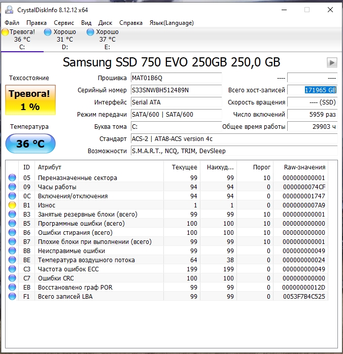 Сап. Поскольку пошла такая бадяга с памятью, я немножко сижу на очке поскольку новый ссд стоит как полет на луну. Короче, Сосунг 250гб у меня уже лет 8+- Из них лет 5 пишет что ему плохо и остался 1% но работает. Короче у меня пару вопросов.. 1) Как узнать когда он сыграет в ящик с концами? 2) 170ТБ записи за 8 лет (при условии что на нем только винда и програм фаилс и стояли) это не дохуя ли? 970 по игоры и фильмы у меня гораздо меньше используется получается, хотя ВСЕ качается и смотрится с него. Помогите унять тряску!