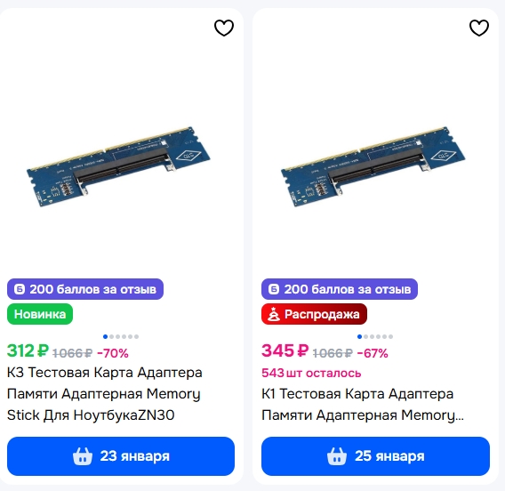 2.Так же расфорсился вариант с ноутубчной памятью через переходник. Тут нужно смотреть по ситуации, есть ли доступная память, переходник можно взять за 100-150р с озона с бонусами.
