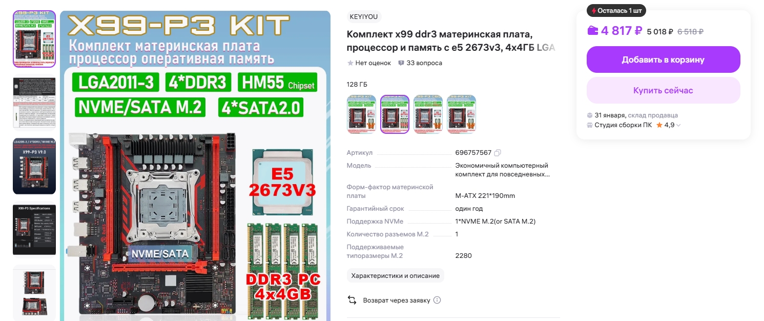 >>7613354 (OP) Взял с озона в попыхах проц зеон е5 2680 v4 за косарик. И хз че дальше делать вижу китайская материнка лга 2011 3 за три косарика под проц на алике . Но читаю отзывы в форумах там пишут что есть риск что все обсорется (а может даже загорится) мол надо материнку надежную брать. Как мне сделать бомж сборку аноны? Бюджет ограничен. Хз какую материнку брать
