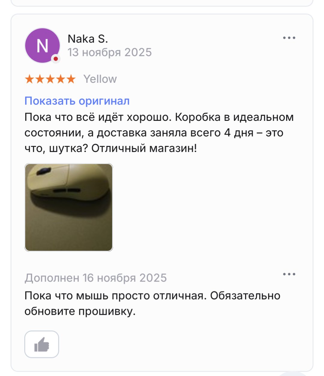 >>7617165 А чо я скажу? Я затерпел, пришёл сюда за советом, так у него отзывы есть 20 штук, 80 заказов, 31 и 1 ещё 2 отзыва новых появилось, недоверять причин нет